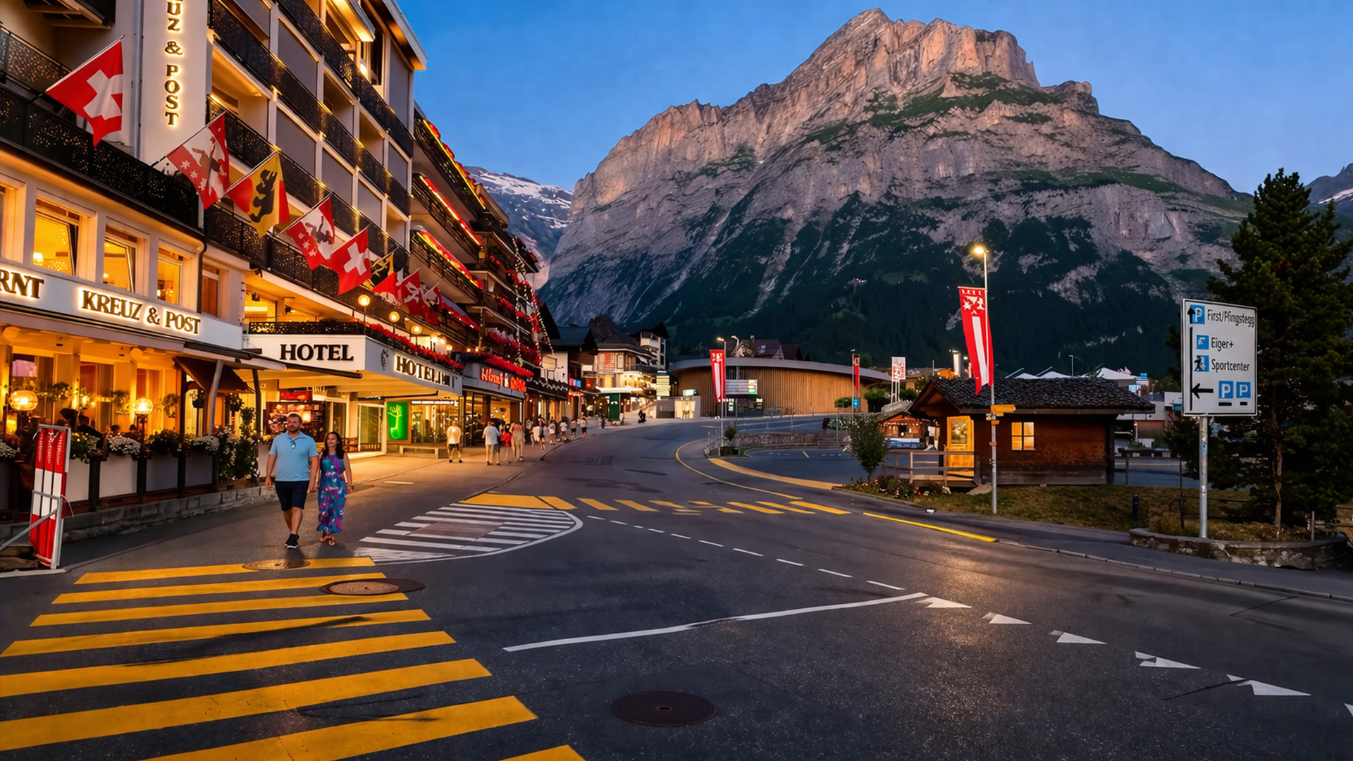 Grindelwald Switzerland evening walk alpine village (4K)
