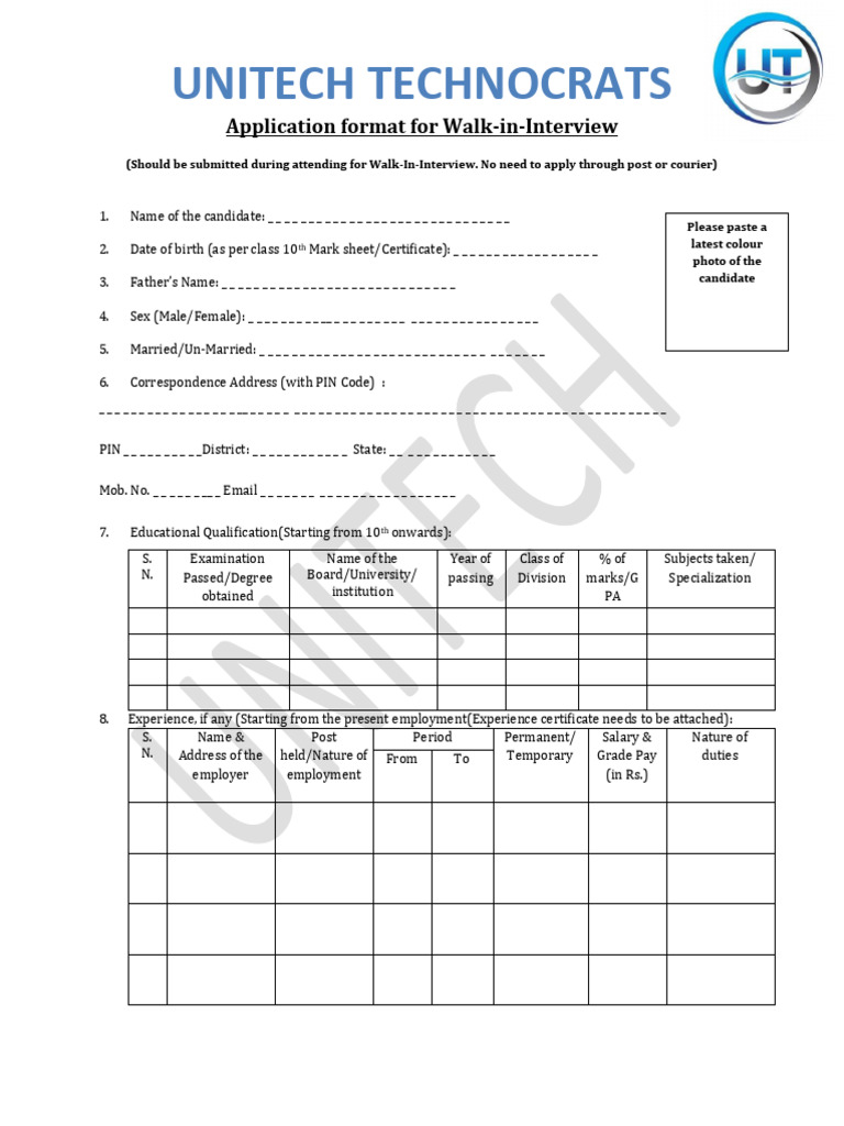 Walk-in Interview Application Format | PDF | Career & Growth