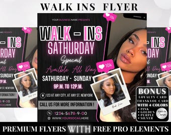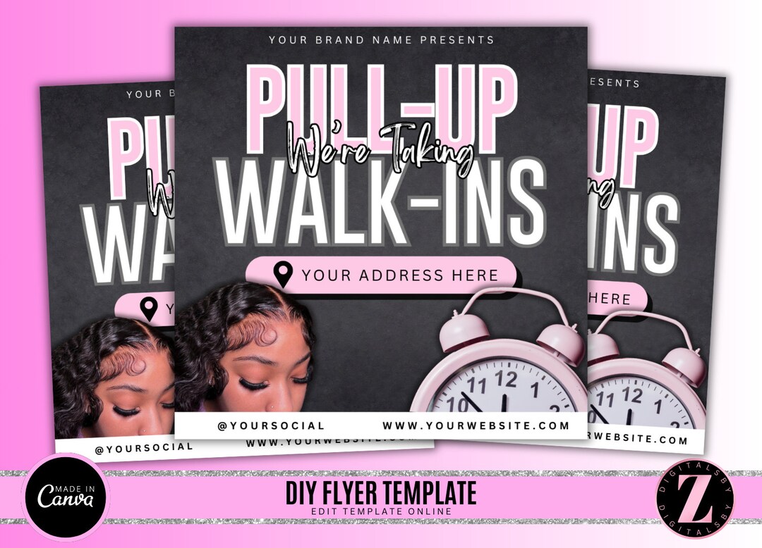 Walk Ins Flyer, Wig Install Flyer, Wax Client, Lash, Nail, Makeup ...