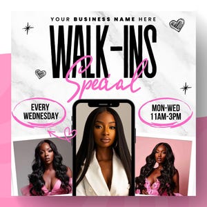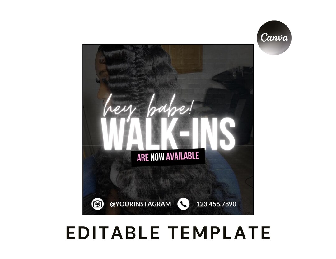 Walk Ins Flyer, Walk in Welcome Flyer, Walk in Wednesday, Hair Booking ...