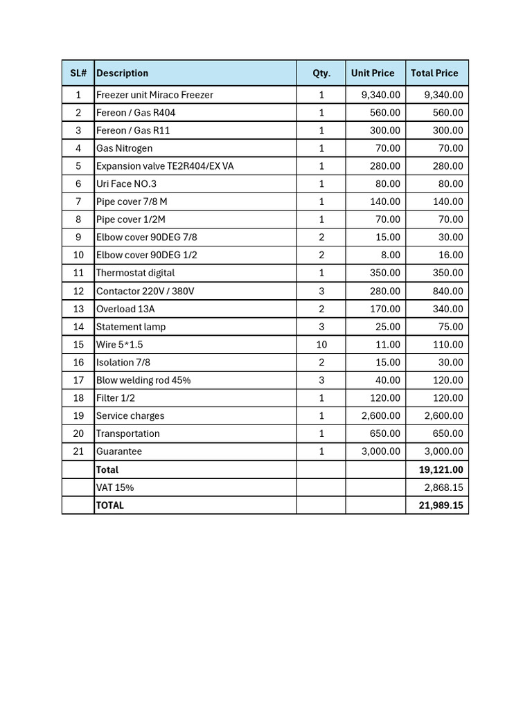 Walk in Freezer Repair Quotation | PDF