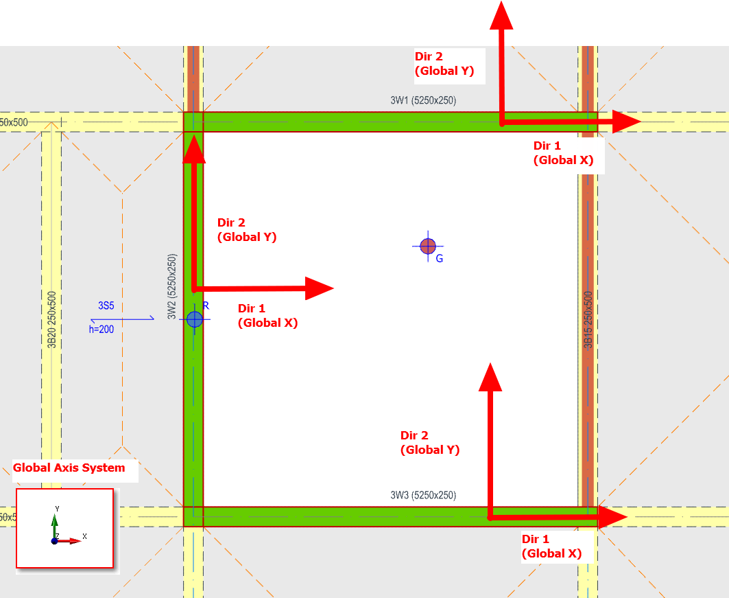 24: Identified wall systems for local analysis in X and Y directions ...