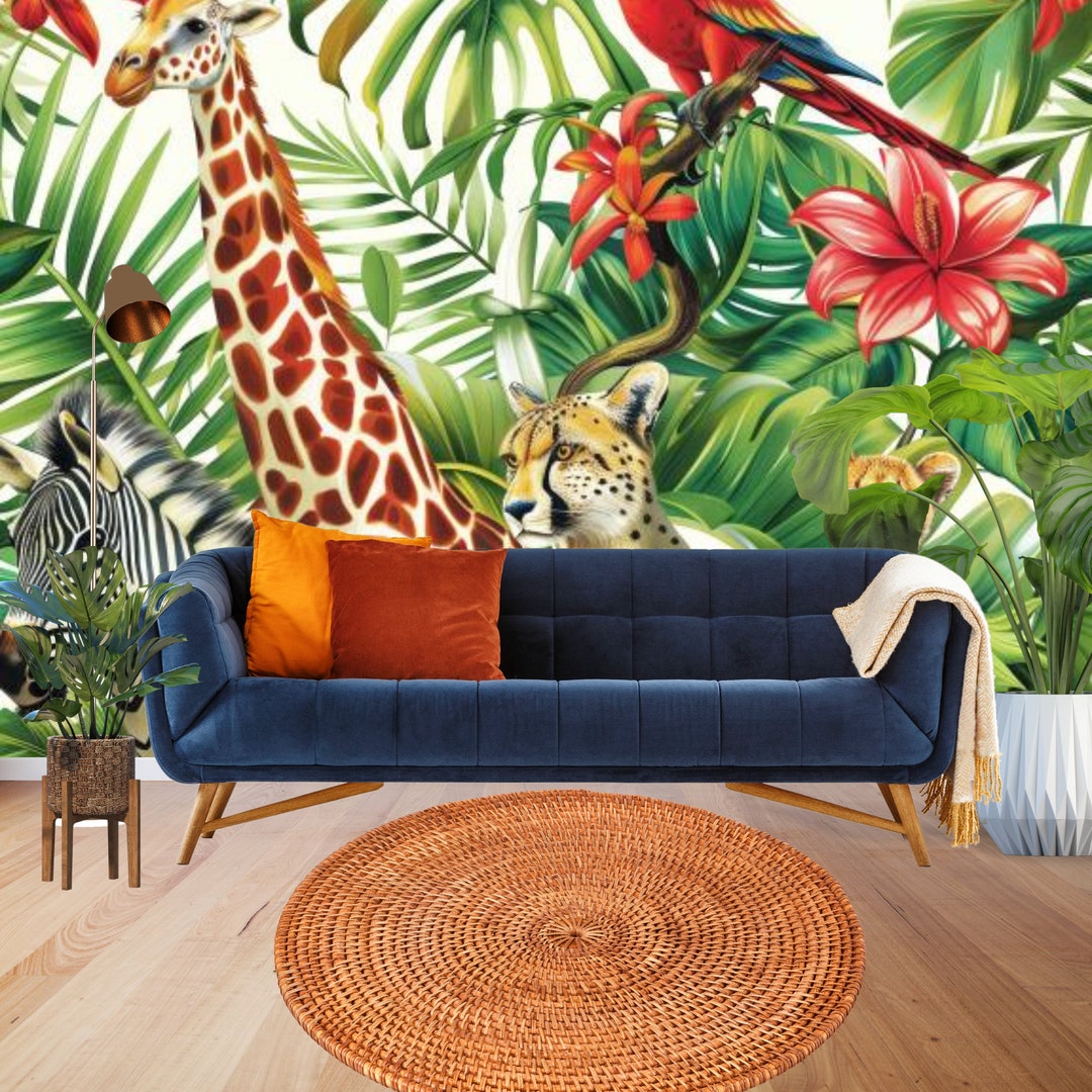 Wildlife Jungle Pattern Wallpaper, Vintage Peel and Stick Wallpaper ...