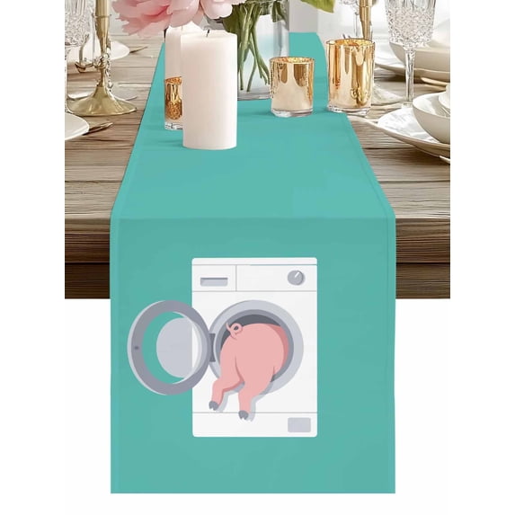 Burlap Table Runner 48 Inches Long, Laundry Room Pink Pig Washing ...