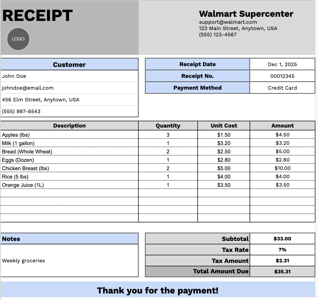 Free☝️ Walmart Receipt Template (Google Sheets, Excel, Word, Google ...