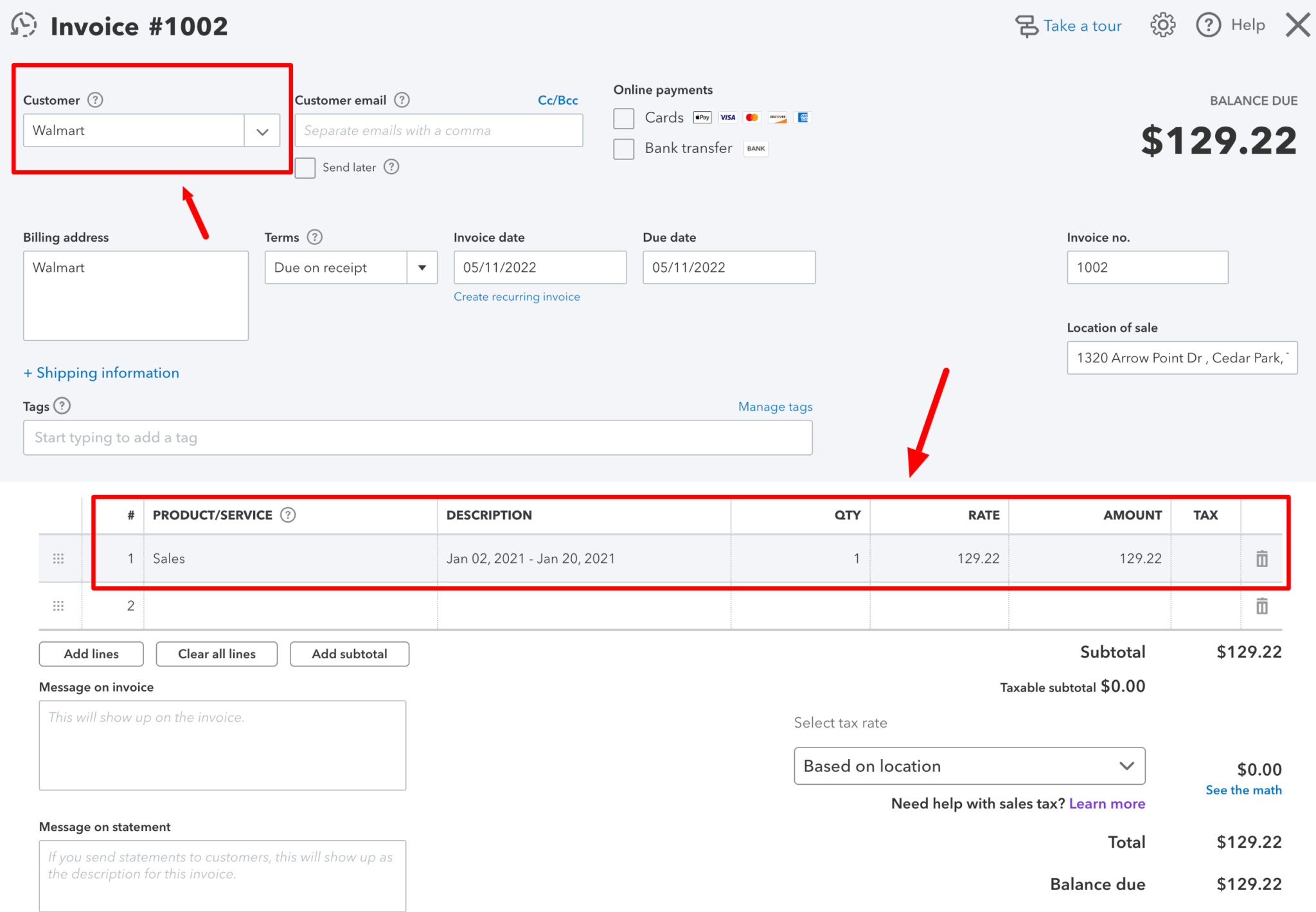 Recording Walmart sales in Quickbooks Online