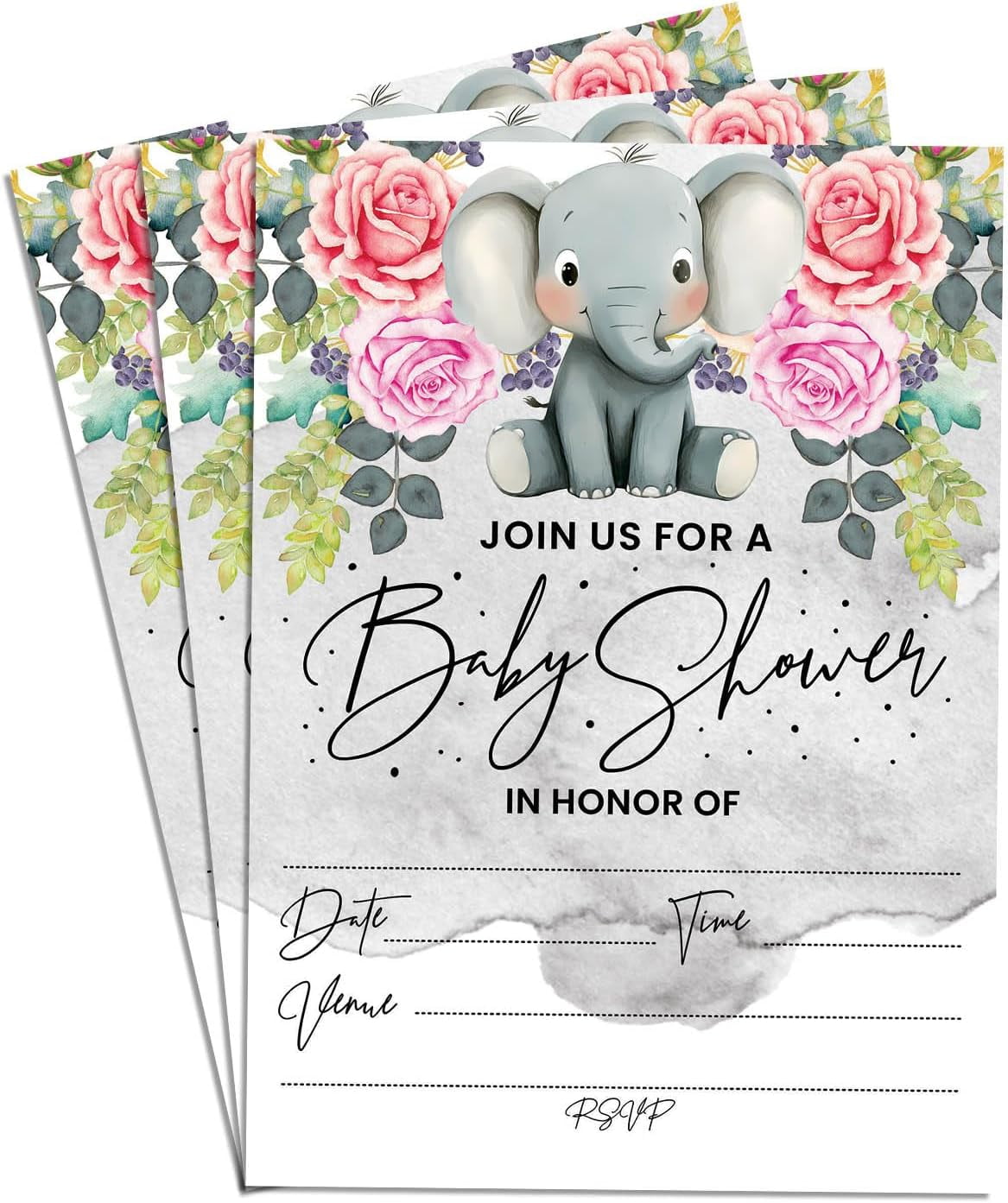40 Pack Baby Elephant Baby Shower Invitations Cards Single Sided ...