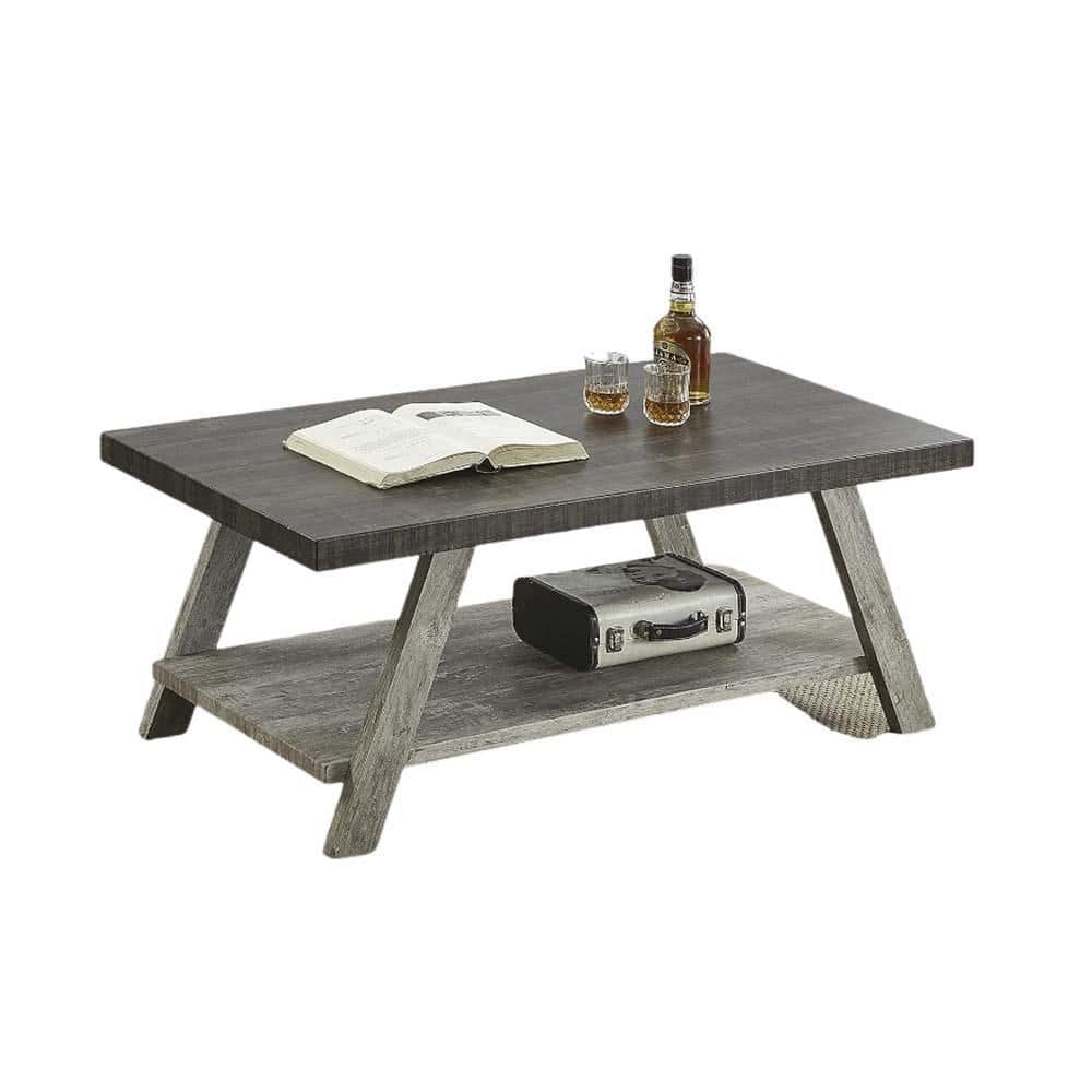 Contemporary 3-Piece Wood Shelf Coffee Table Set, Weathered Walnut and ...