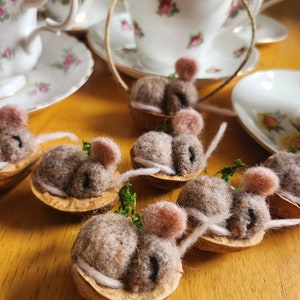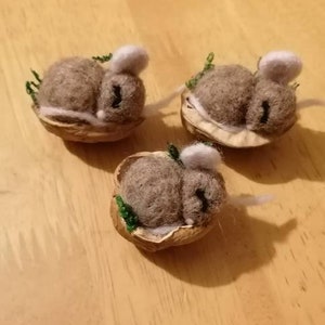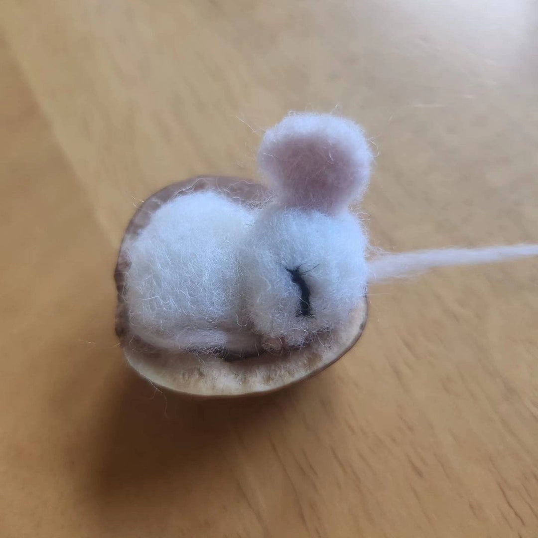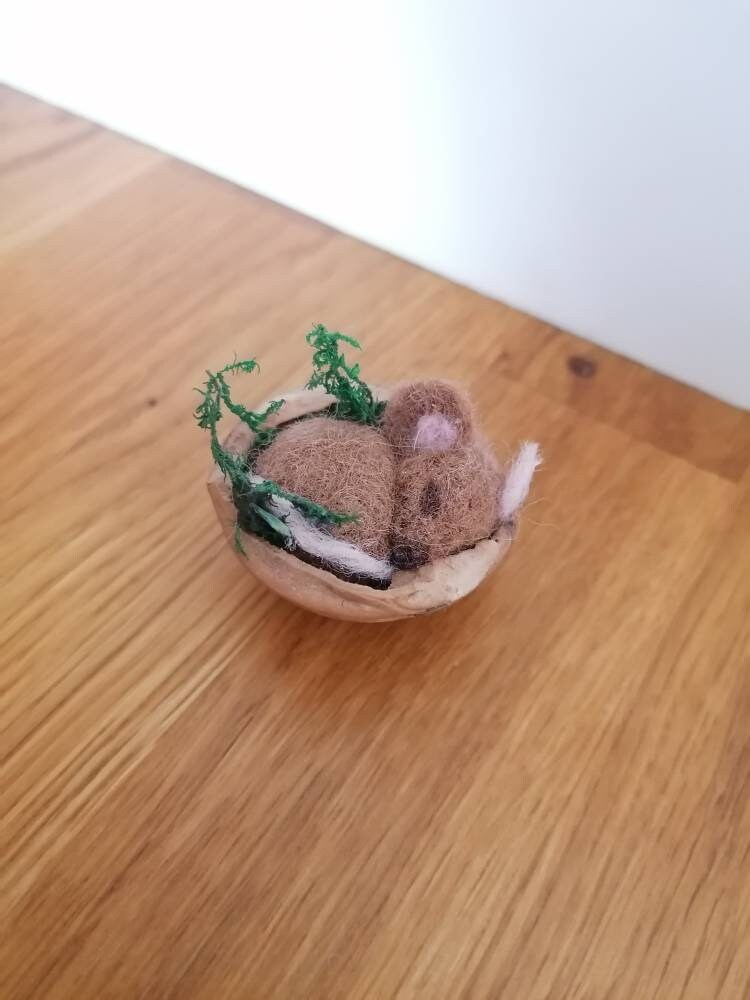 Felted Sleeping Mouse in Walnut Shell, Miniature Wool Ornament - Etsy UK