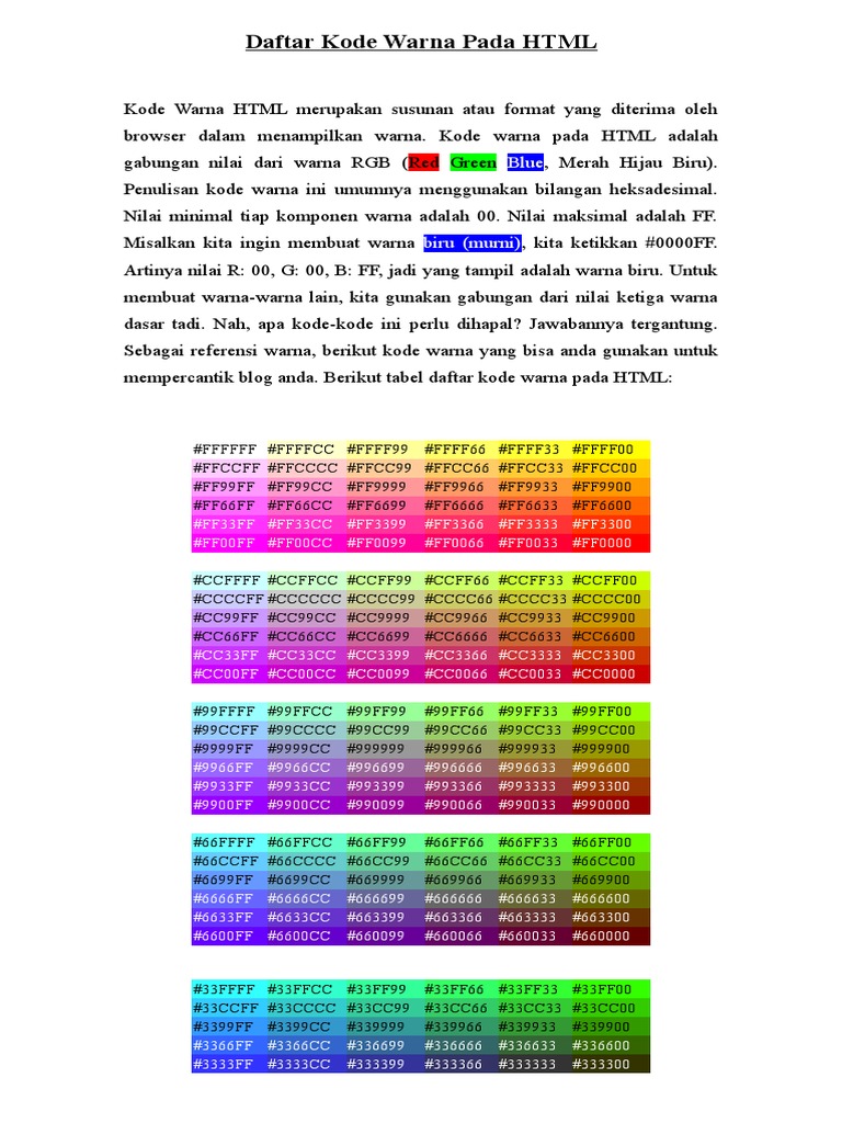 Daftar Kode Warna Pada HTML | PDF