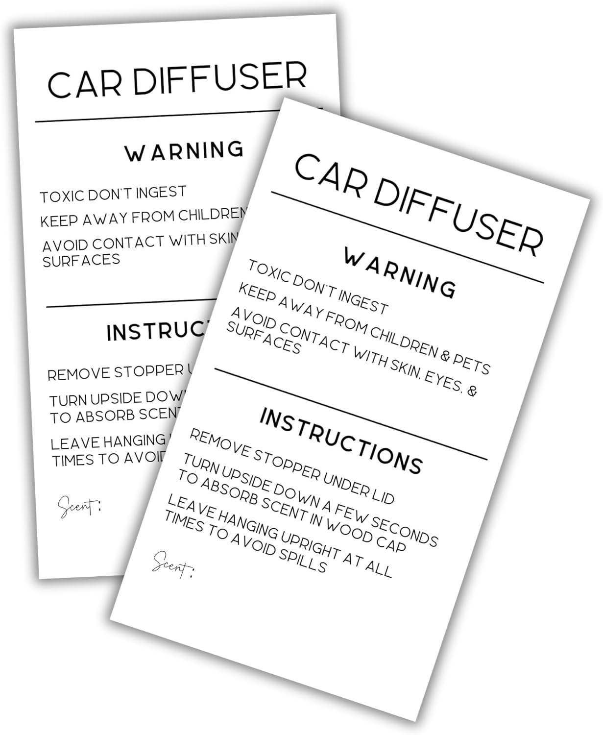 100 Pack Car Oil Hanging Diffuser Care & Instructions Labels 1.5 inch ...