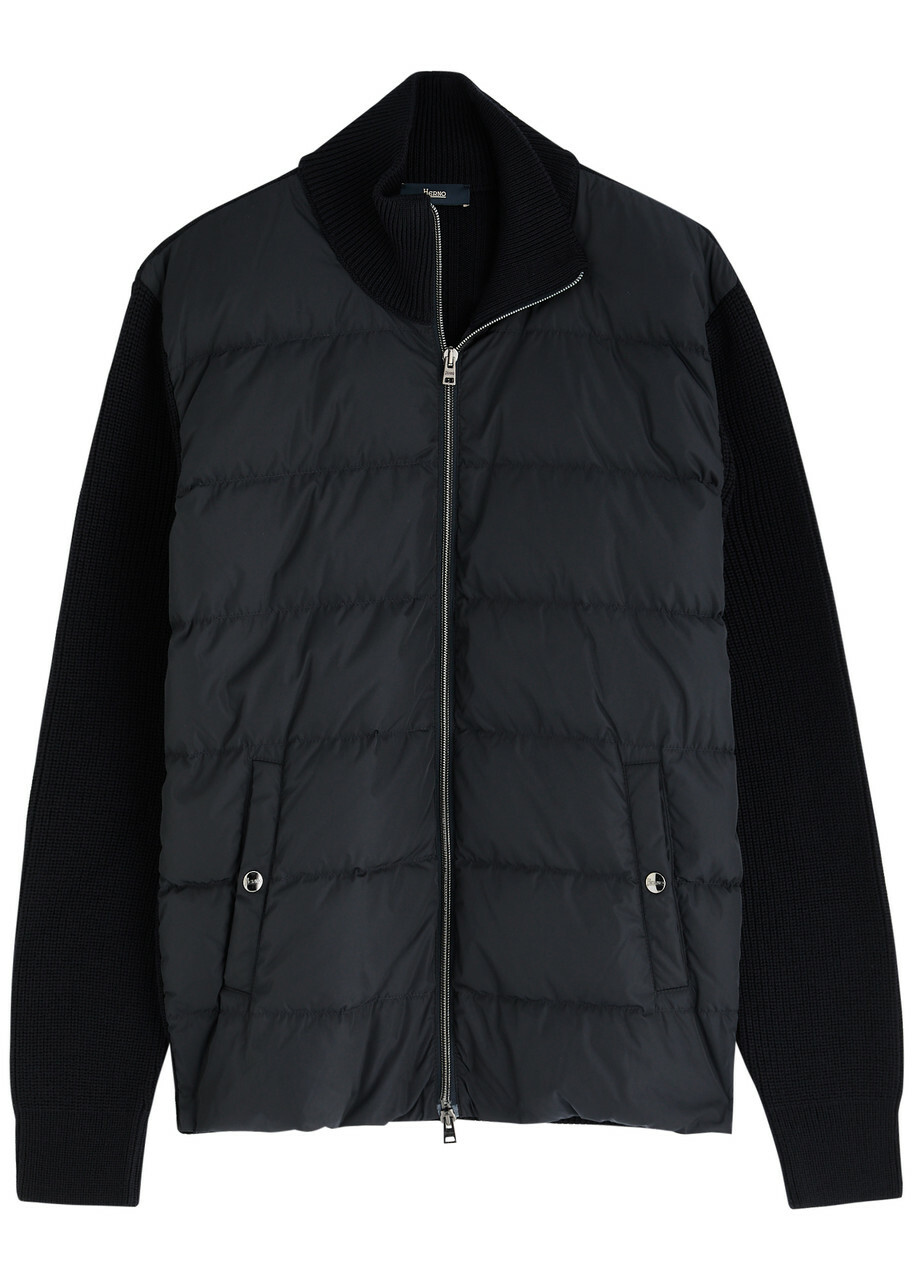 Herno Quilted Shell and Wool Jacket Navy Herno