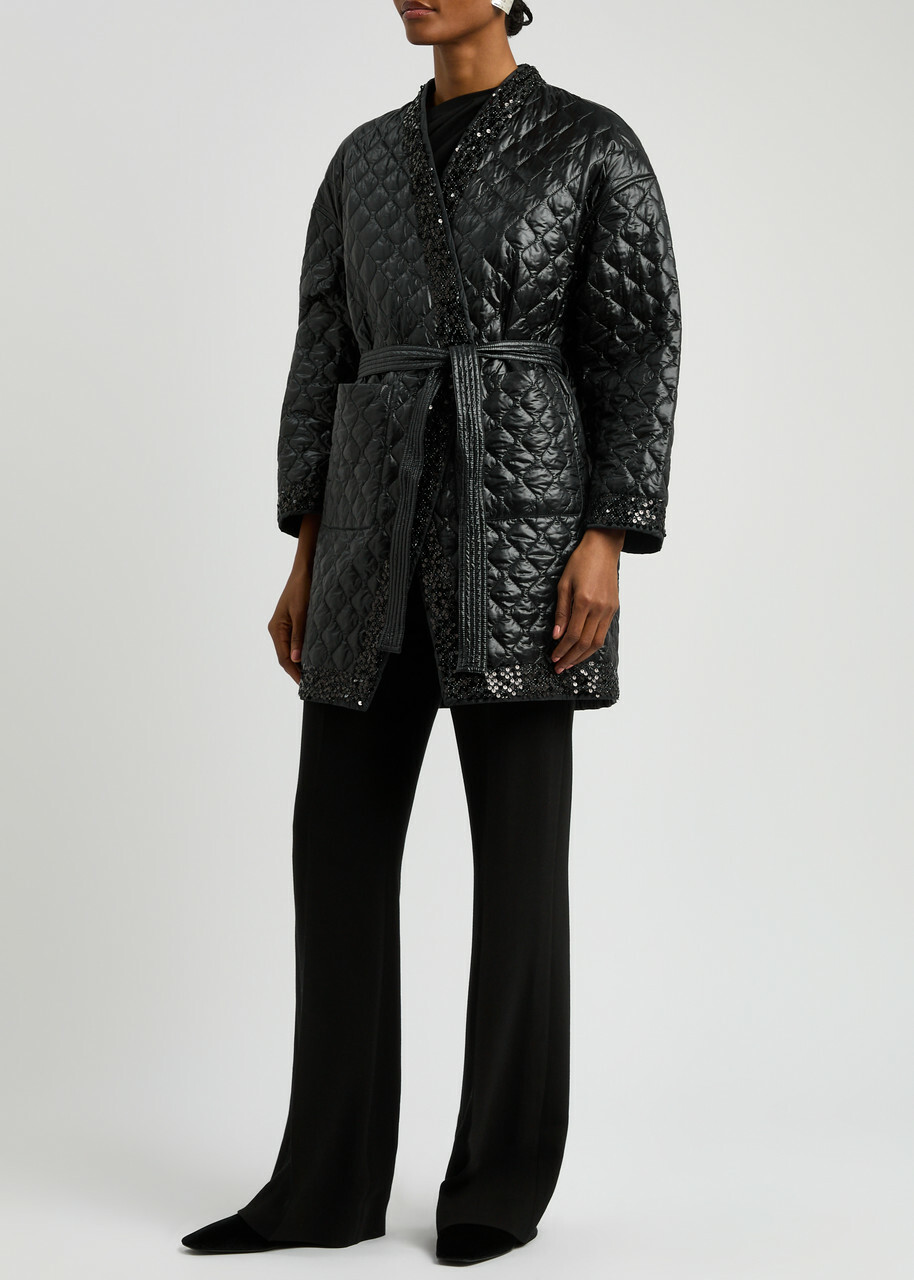 Herno Embellished Quilted Shell Wrap Jacket Black Herno