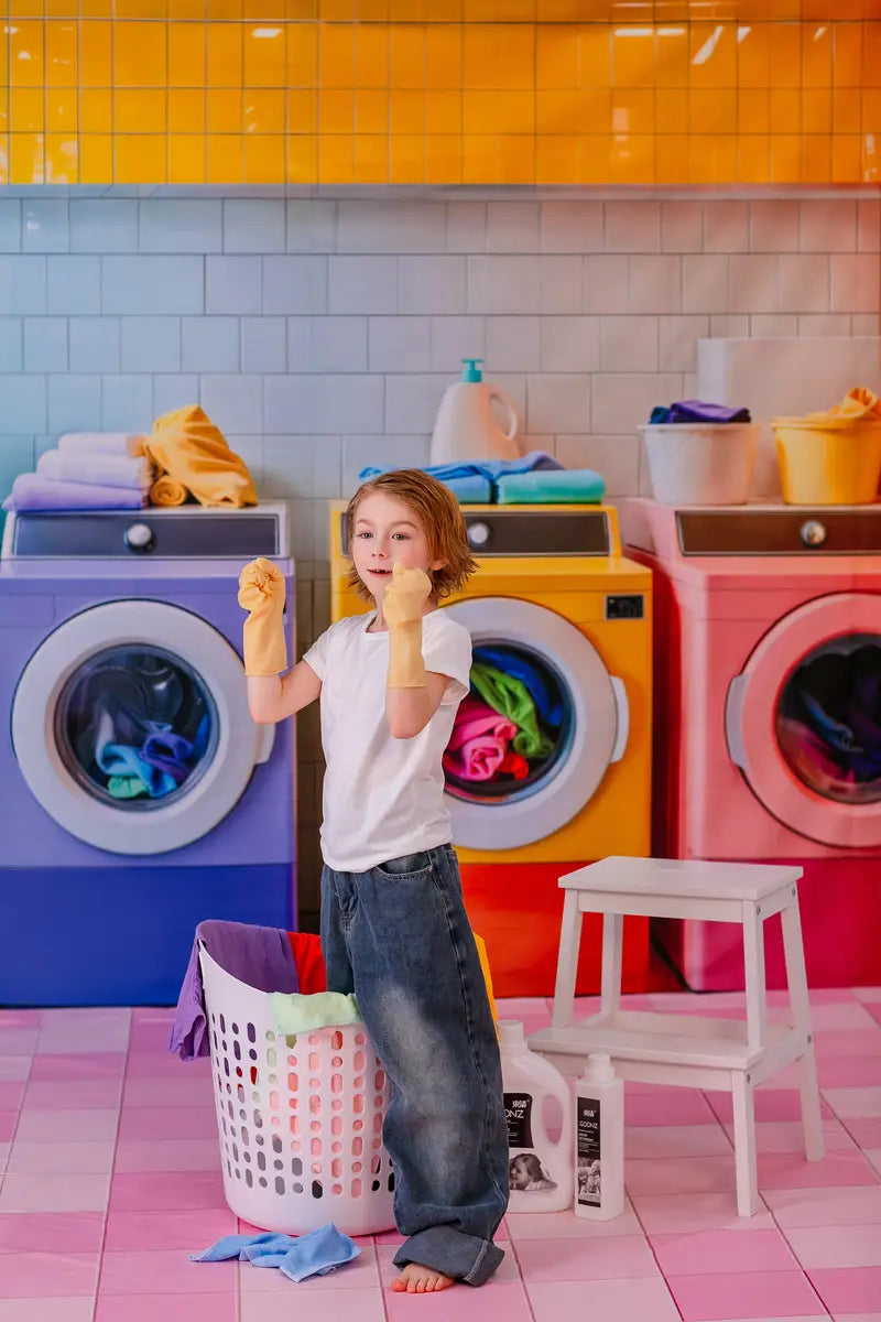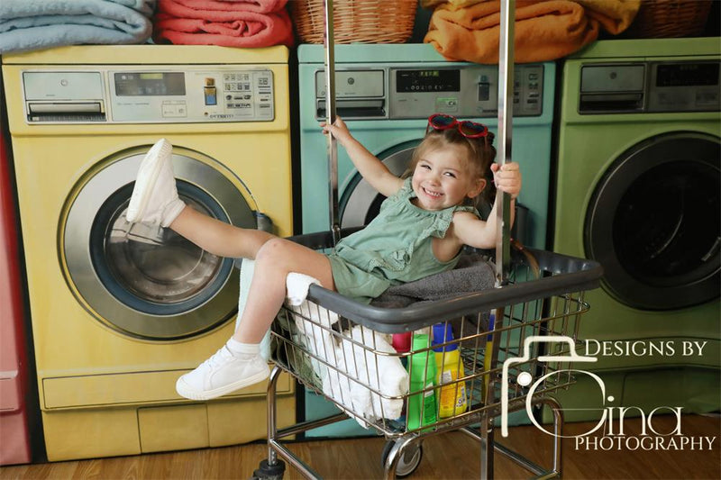 Kate Laundry Day Colorful Washing Machine Backdrop for Photography