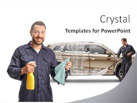 Car Wash Concept Worker Holding PPT template 55 | CrystalGraphics