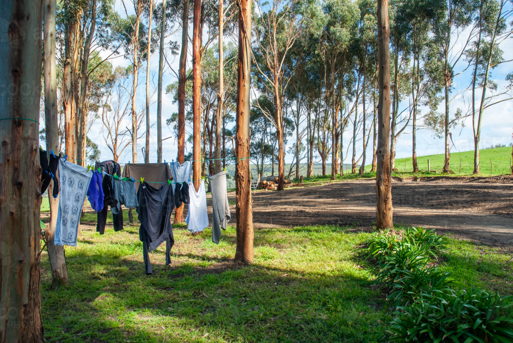Image of Washing hanging on the line surrounded by gum trees - Austockphoto