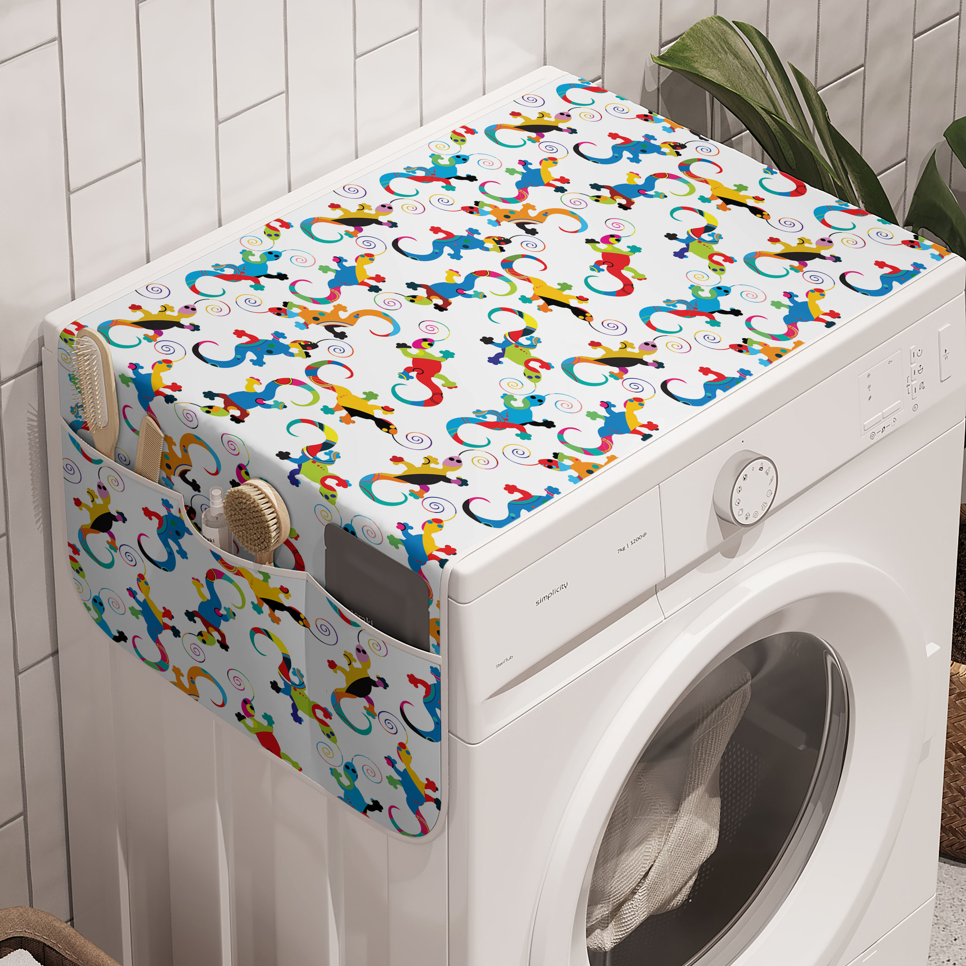 Gecko Washer Cover, Abstract Reptiles Composition of Lizards with ...