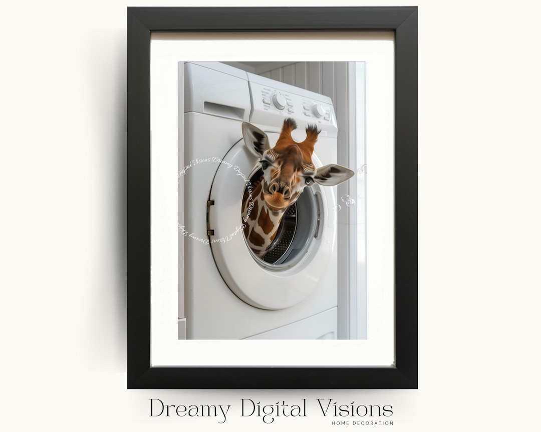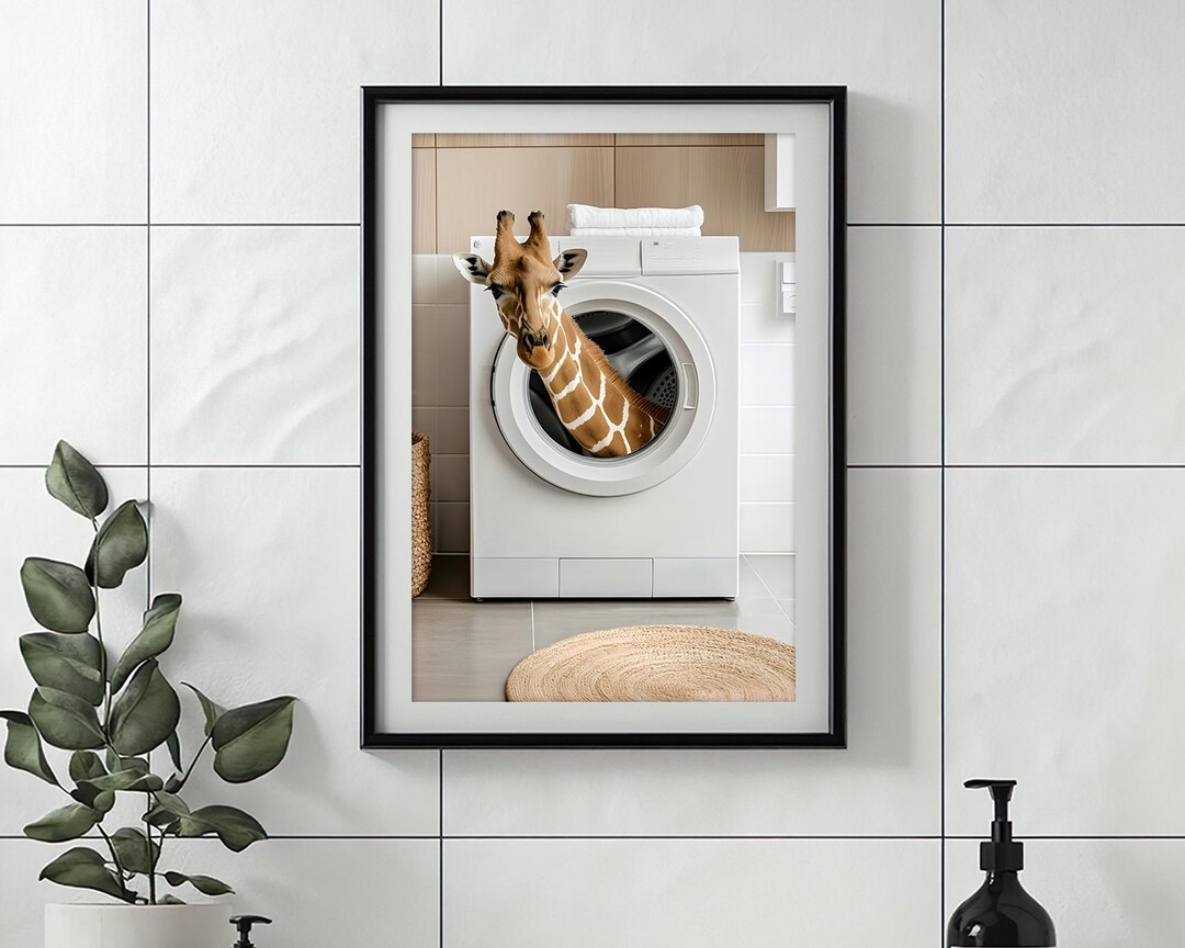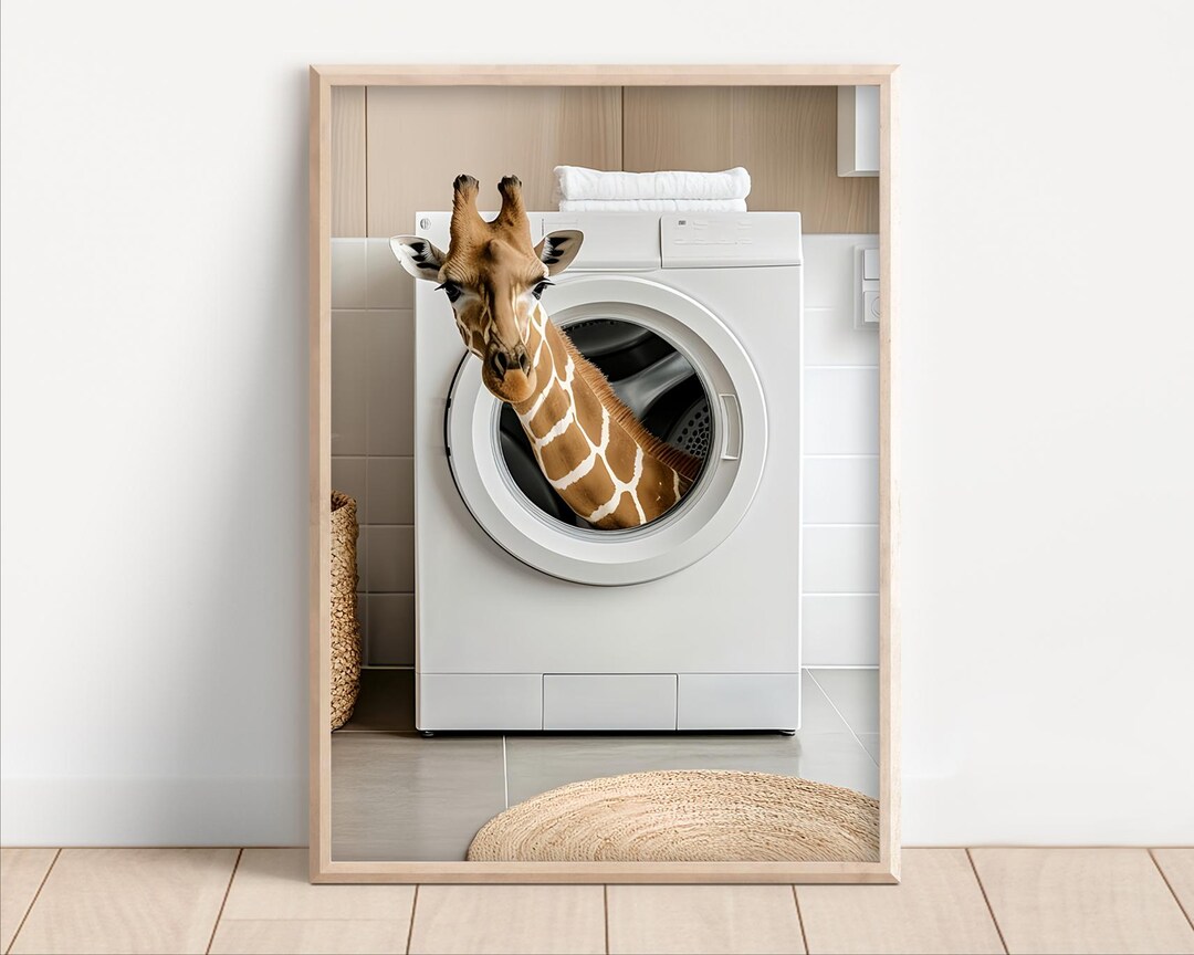 Cute Giraffe in Washing Machine, Laundry Room Decor, Funny Laundry ...