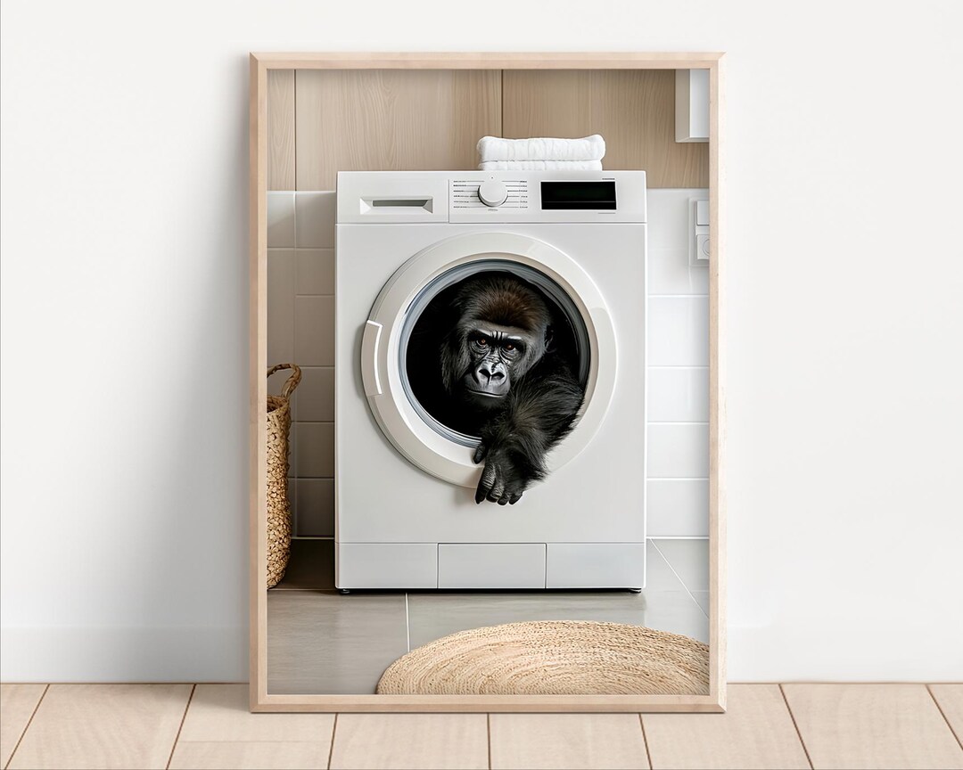 Gorilla in a Washing Machine, Poster or Canvas, Funny Bathroom Wall Art ...
