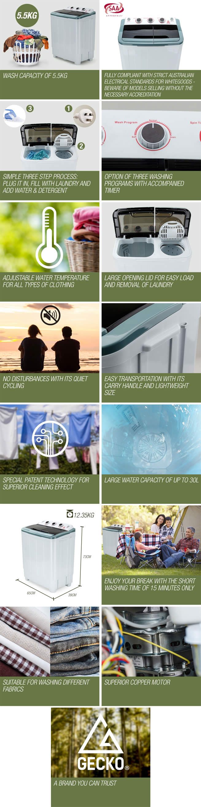 Gecko 5.5kg Twin Tub Portable Washing Machine for Camping | Crazy Sales