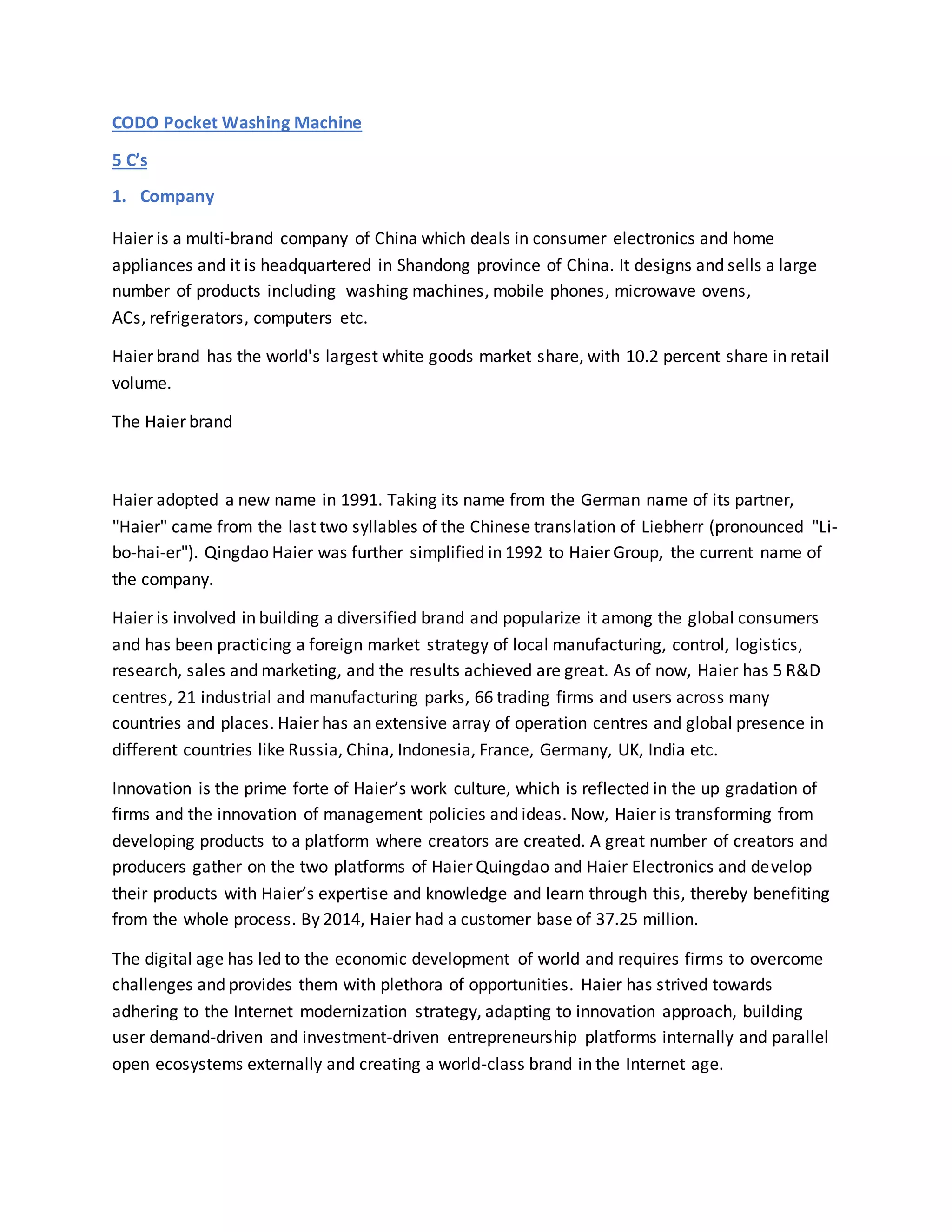Codo washing machine marketing strategy | DOCX | Logistics | Business