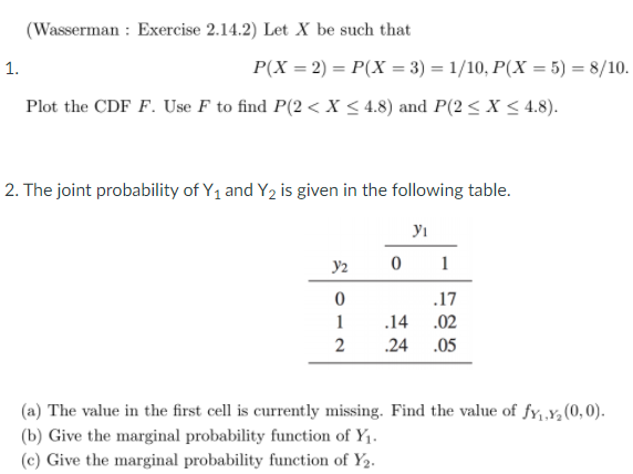 Solved (Wasserman: Exercise 2.14.2) Let X be such that 1. | Chegg.com