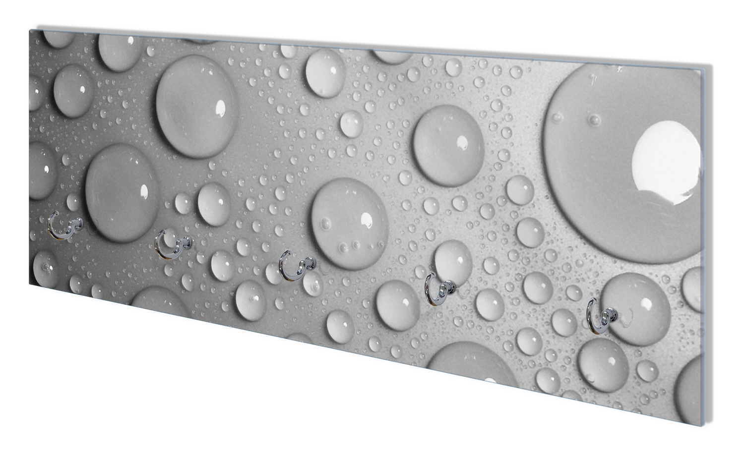 Wandgarderobe aus Glas Wassertropfen in schwarz weiß | Wallario.de