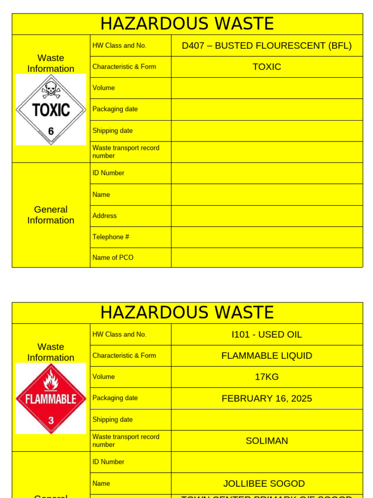 DENR Hazardous Waste Label Template | PDF