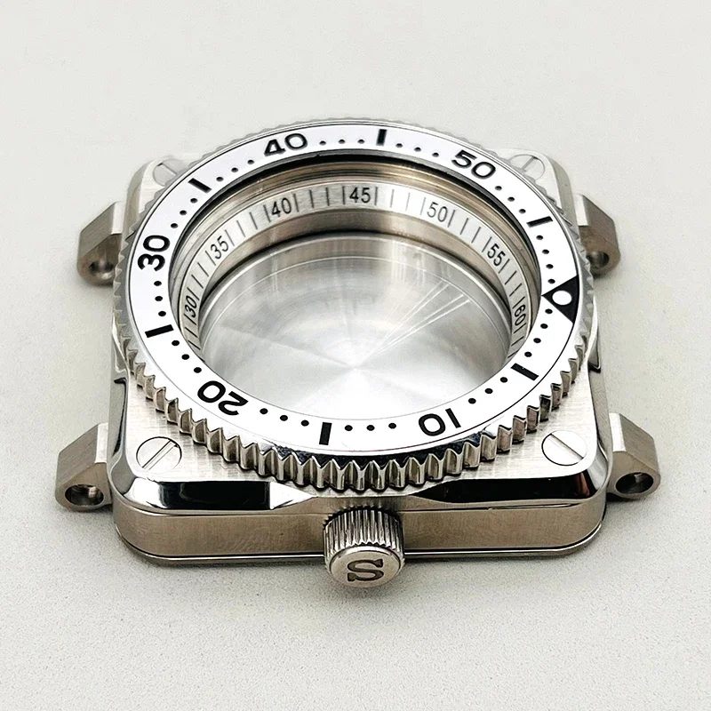 New Style NH36 Gear Bezel Silver Square Men's Watch Case Fits Seiko ...
