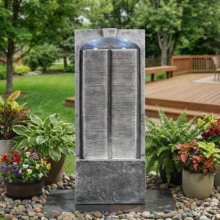 39"Outdoor Water Fountain with Pump,Modern Cascading Freestanding Wall ...
