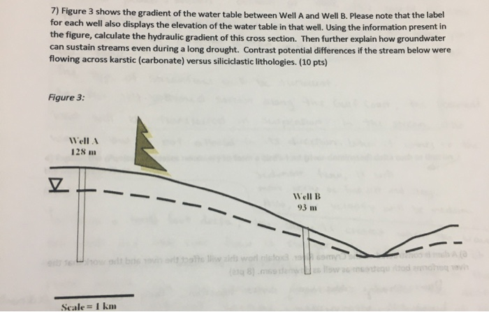 Solved 7) Figure 3 shows the gradient of the water table | Chegg.com