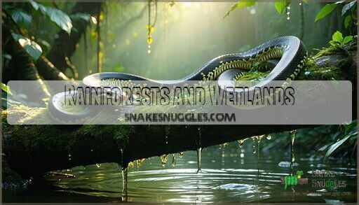 Snakes habitat. Snake on tree branch or in water wild nature, exotic ...
