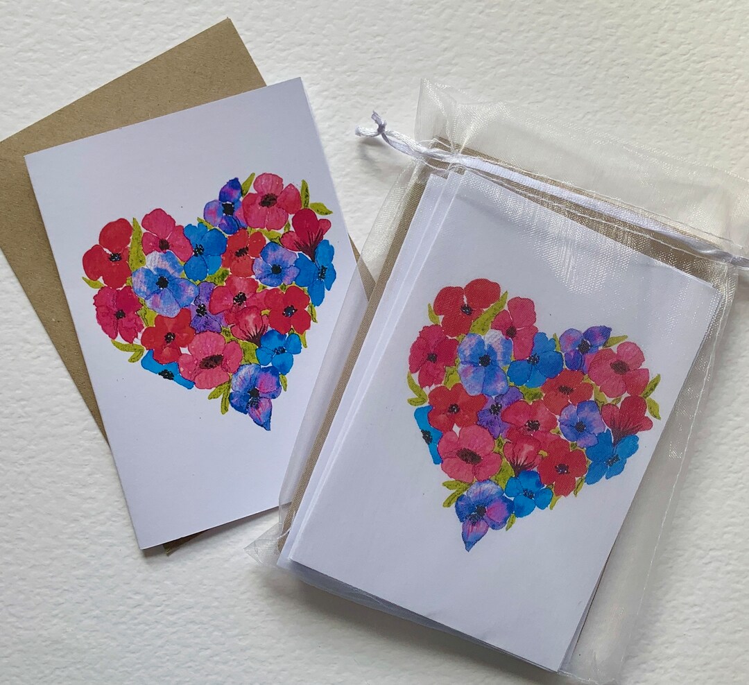 6 Pretty Notelets With a Beautiful Heart Made up of Watercolour Flowers ...