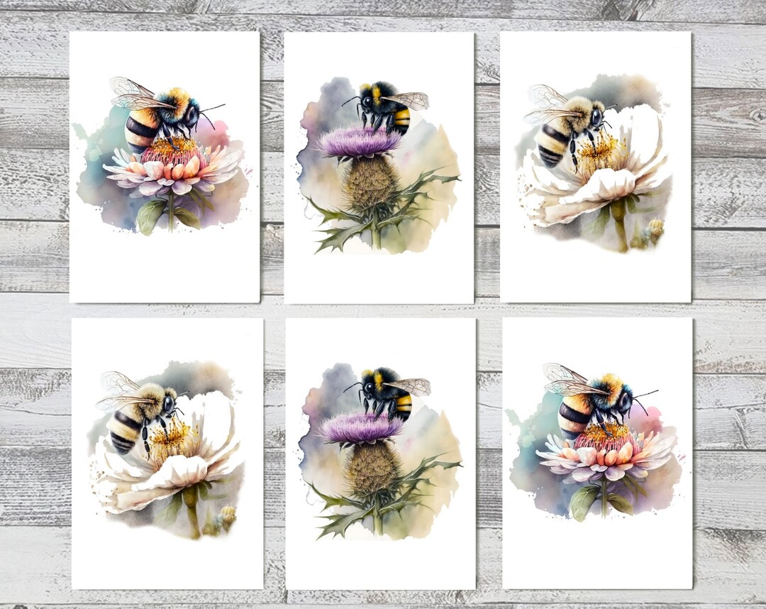 Handmade Watercolor Bumble Bee Cards: Floral Notelets, Pack of 6 - Etsy UK