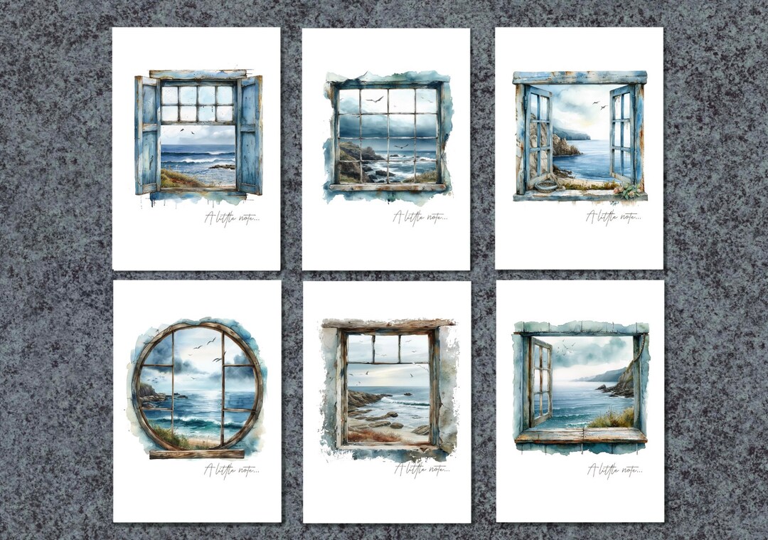 Handmade Watercolour Seascape Notelets: Cornish Coast Cards (pack of 6 ...
