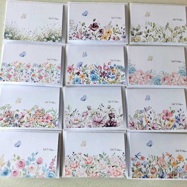 10x Wildflower Notelets, Pack of 10 Watercolour Any Occasion Cards ...