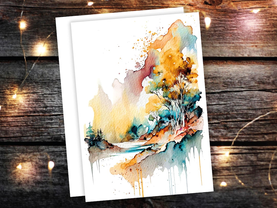 Landscape Card Watercolour Abstract Magical Painting Any Occasion ...