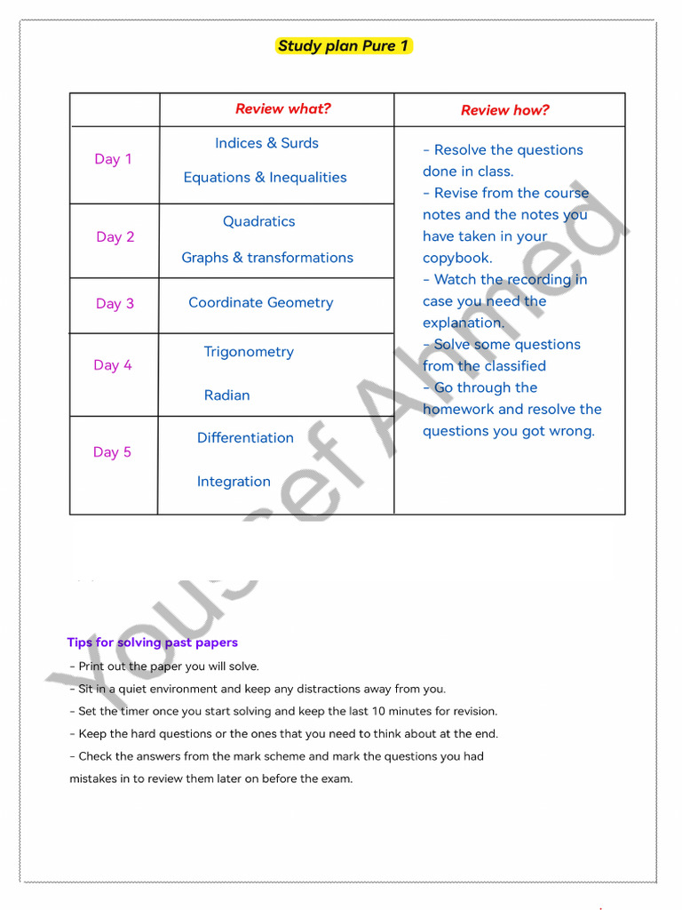 p1 Study Plan - Watermark | PDF