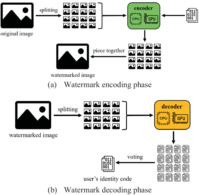Proposed watermarking system: (a) encoder and (b) decoder. | Download ...