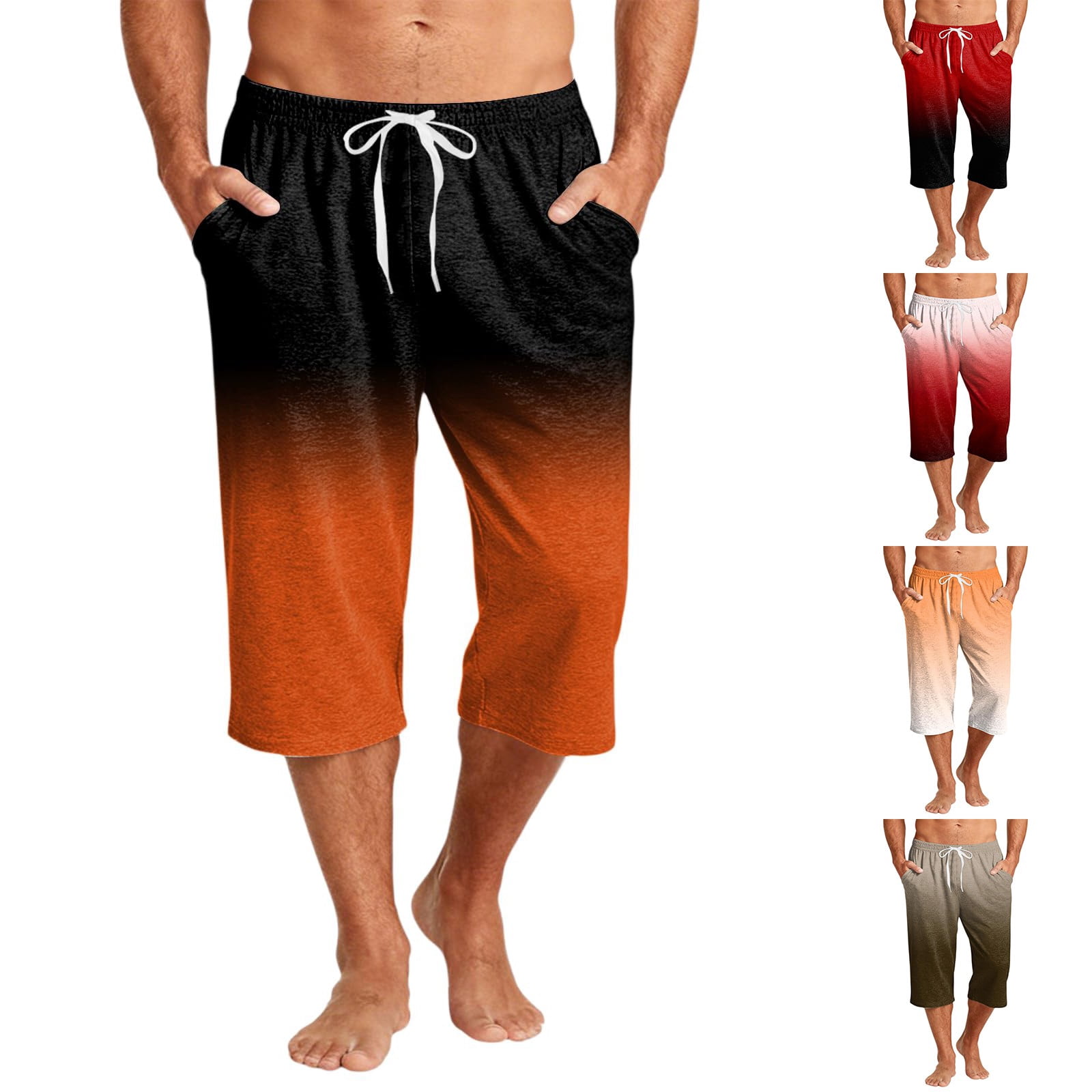 Blekii Men's Gradient Print 3/4 Length Pants Soft Cotton Blend Casual ...