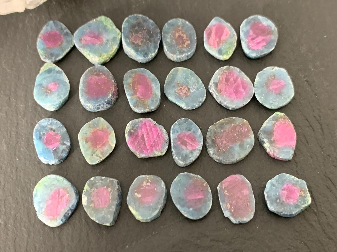 19 Pcs Natural Watermelon Ruby Raw Crystal Slice Druzy Healing Mineral ...