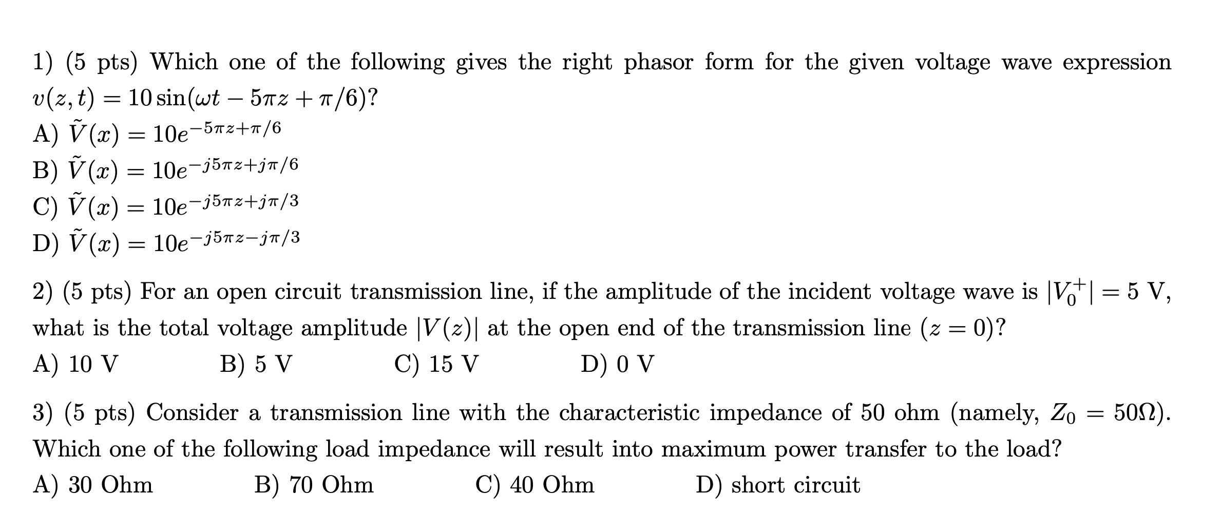 2. (a) Write general complex exponential expressions for two electric ...