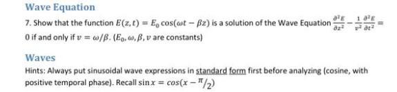 Solved 7. Show that the function E(z,t)=E0cos(ωt−βz) is a | Chegg.com