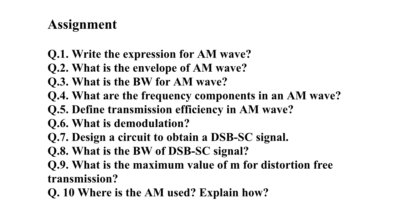 Solved AssignmentQ.1. Write the expression for AM wave?Q.2. | Chegg.com