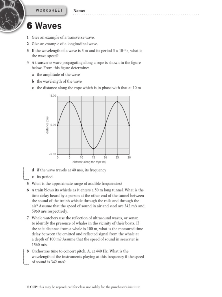Wave speed, frequency and wavelength worksheet, Edexcel iGCSE physics 9 ...