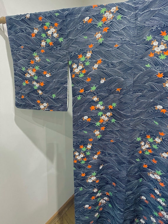 Kimono Japanese Seigaiha Wave Pattern, Blue Sea Ocean, Maple Leaf ...