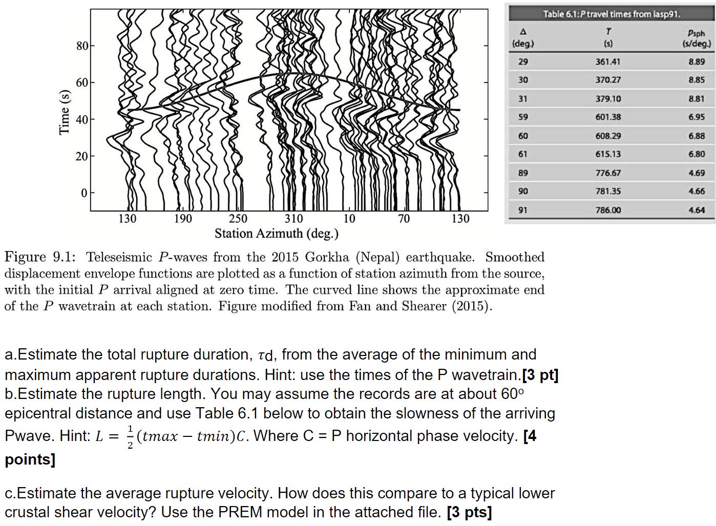 Solved 2.The Figure below plots teleseismic P-waves from the | Chegg.com