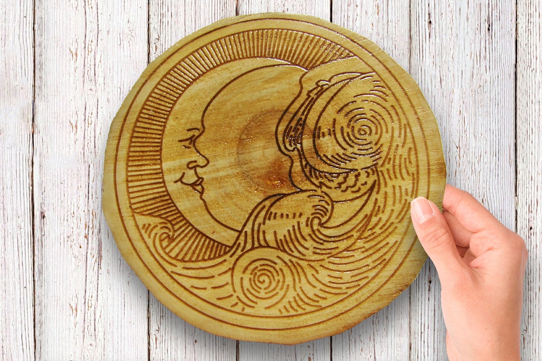 Moon and Waves Engraved Wood Slice Art Wall Hanging or Trivet Sign Live ...