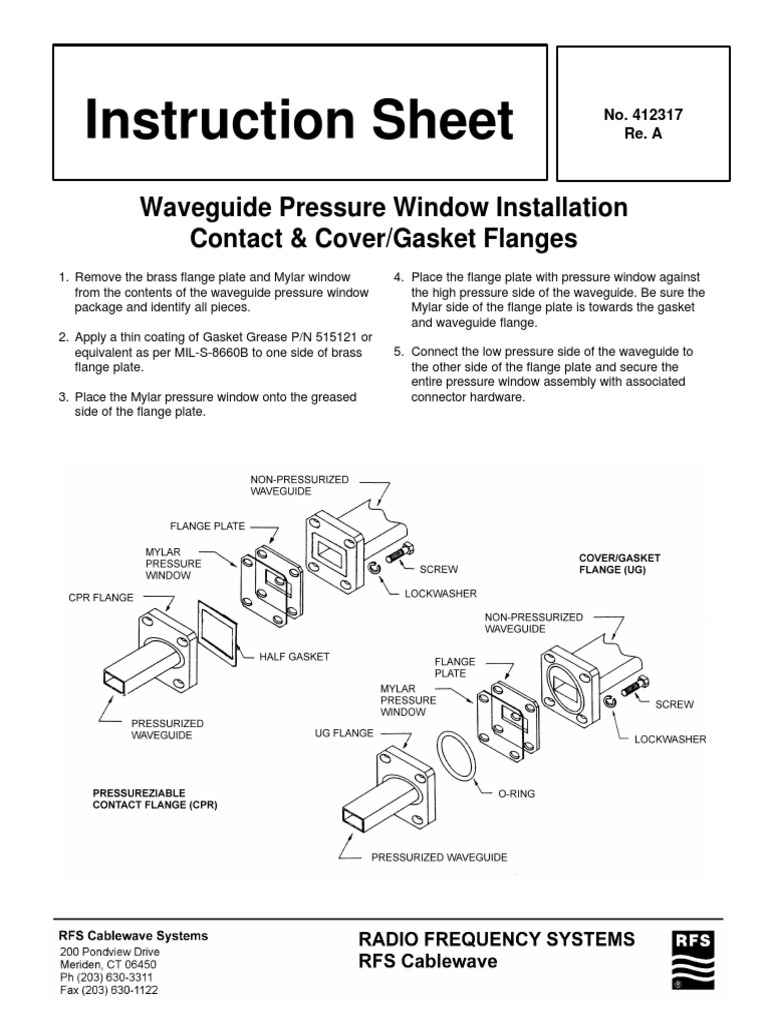Instruction Sheet: Waveguide Pressure Window Installation Contact ...
