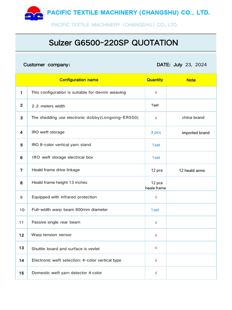 Textile Waving Machine Quotation 1 | PDF | Textile Manufacturing | Loom